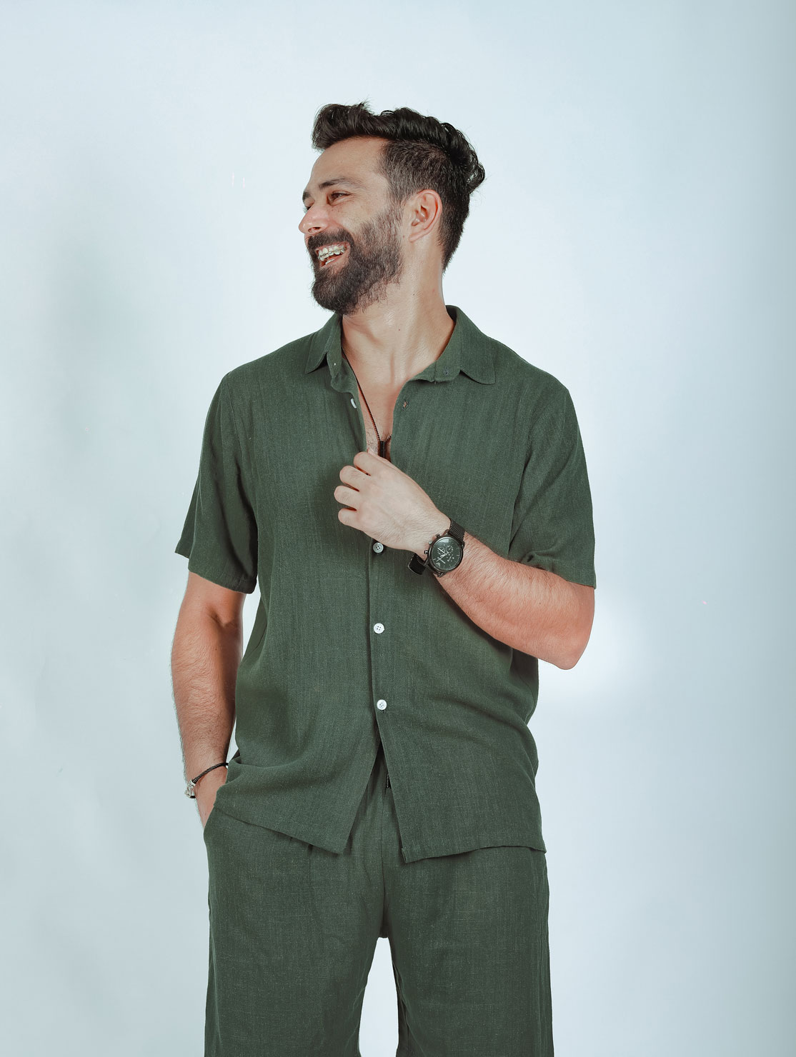 Dark Green Linen Summer Shirt Dark Green Linen Shirt is the perfect blend of sophistication and comfort. Made from 100% premium linen, this shirt is lightweight, breathable, and ideal for warm weather. Its timeless design, featuring a sleek collar and tailored fit, makes it a versatile piece for both casual and formal occasions.