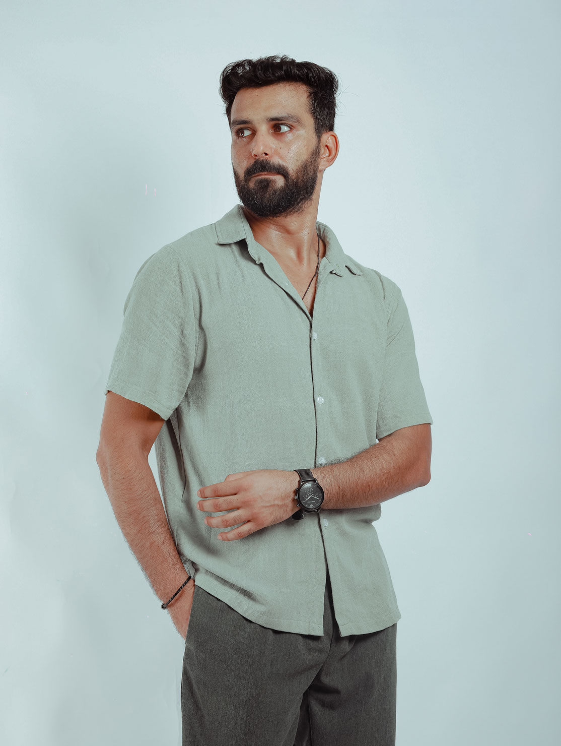 Green Linen Summer Shirt